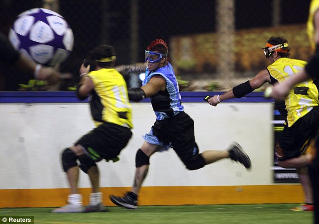 Le jeu se compose de deux équipes de 4 joueurs chacun, c’est un mixte de football et hockey , mais le plus drôle c’est qu’on a le droit d’utiliser un TASER sur le joueur qui possède le ballon de 60cm de diamètre, se servir d’un taser pour électrocuter l’adversaire rend la partie de jeu plus marrante, les pistolets paralysants sont utilisés pour repousser leurs adversaires.
