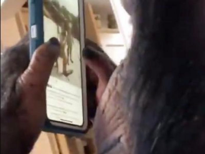 On regarde ces vidéos des chimpanzés font comme les humains c’est fascinant, surtout un chimpanzé regardé des vidéos et photos en défilant les pages sur internet, comme un petit enfant ou un bébé qui reste scotcher sur nos smartphones.
